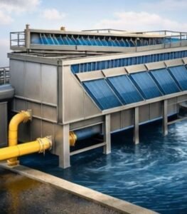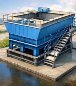 O funcionamento do decantador lamelar baseia-se na aplicação de placas inclinadas (lamelas) no interior do tanque. Essas placas criam uma área de decantação multiplicada dentro de um volume reduzido.
